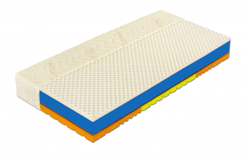Inovovaná vysoká 7-zónová robustní matrace s vysokou tuhostí. Matrace je vyrobena z houževnaté pěny Flexifoam®, která zajišťuje vynikající ortopedičnost, elasticitu, vzdušnost a díky zvýšenému jádru i mnohem vyšší komfort. Stabilitu, nosnost a odolnost dodává jádru masivní vrstva kokos-latexové desky (tuhost a odolnost při současném zachování dobrých ortopedických vlastností). Pánevní zóna s upravenou tuhostí pomáhá správně rozložit tlak v oblasti kyčlí.