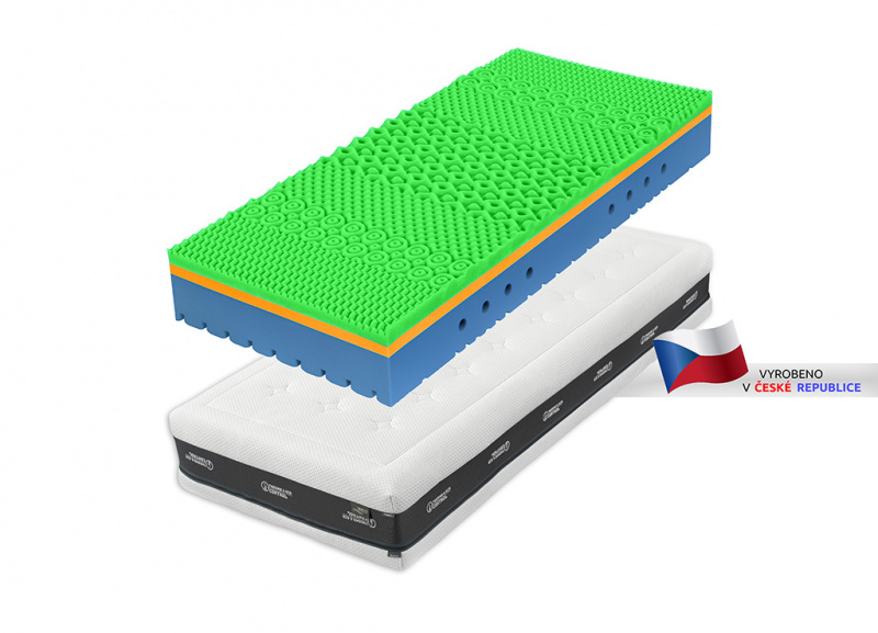 - **HORNÍ PLOCHA MATRACE ** – Paměťová pěna pečuje o klouby a uvolňuje svalstvo.
