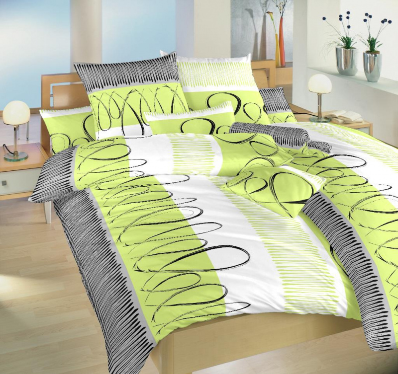 Bavlněné ložní povlečení – Evelína kiwi v 1 balení obsahuje polštář o rozměru 70 × 90 cm a povlak na přikrývku o rozměru 140×200 cm.