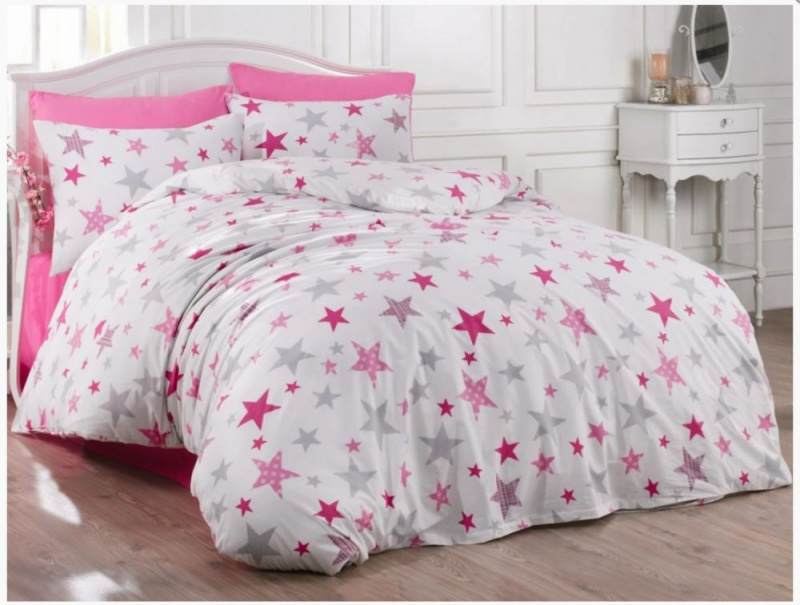 Bavlněné ložní povlečení – Galaxy růžové v 1 balení obsahuje polštář o rozměru 70 × 90 cm a povlak na přikrývku o rozměru 140×200 cm.