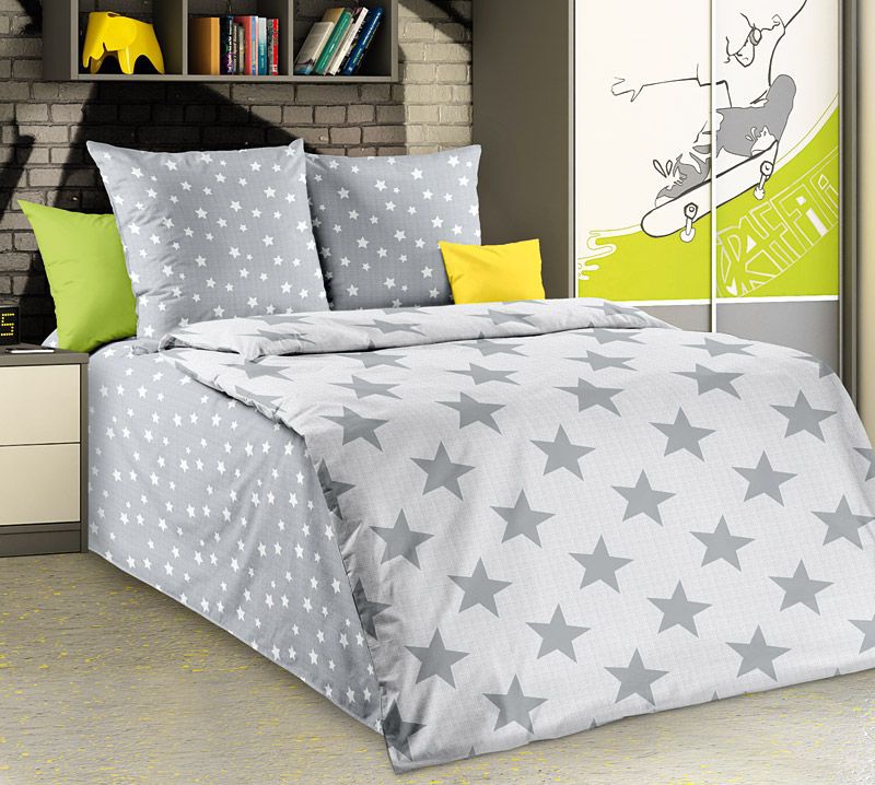 Bavlněné ložní povlečení – Hvězdy bílé v 1 balení obsahuje polštář o rozměru 70 × 90 cm a povlak na přikrývku o rozměru 140×200 cm.