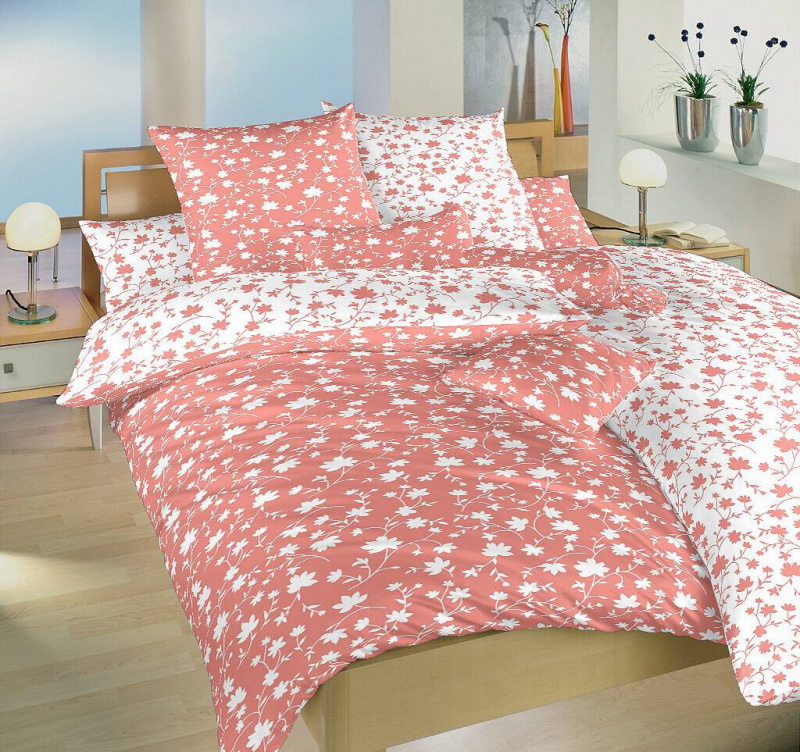 lososový Bavlněné ložní povlečení – Javor bílý/losos DUO v 1 balení obsahuje polštář o rozměru 70 × 90 cm a povlak na přikrývku o rozměru 140×200 cm.