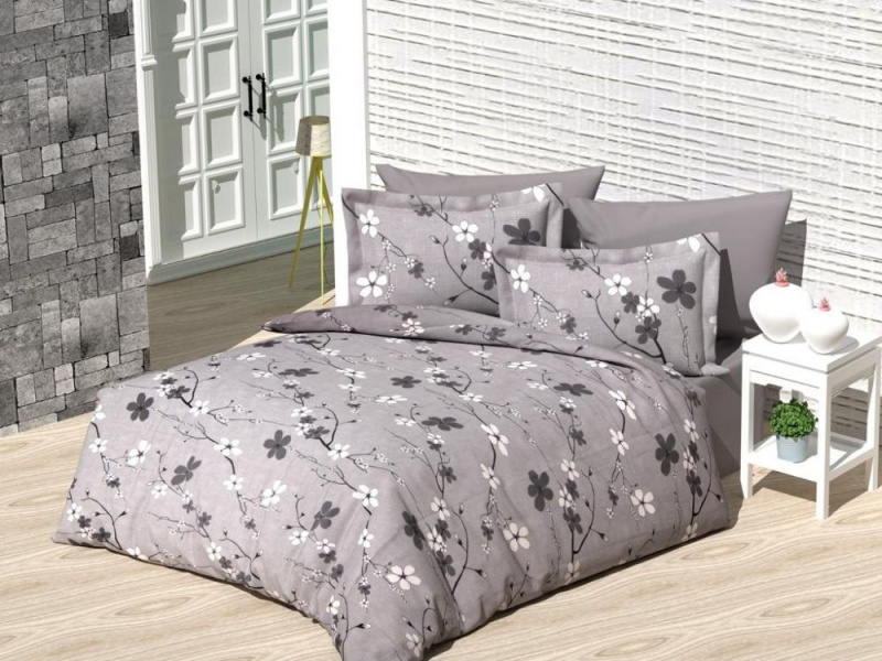 Bavlněné ložní povlečení – Květoslava šedá 1 balení obsahuje polštář o rozměru 70 × 90 cm a povlak na přikrývku o rozměru 140×200 cm.