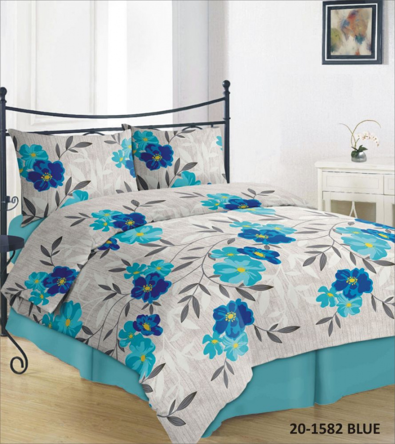 Bavlněné ložní povlečení – Kvítí blue v 1 balení obsahuje polštář o rozměru 70 × 90 cm a povlak na přikrývku o rozměru 140×200 cm.