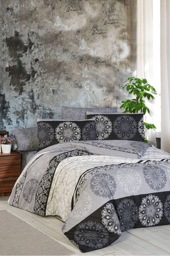 Bavlněné ložní povlečení – Mandala černá 1 balení obsahuje polštář o rozměru 70 × 90 cm a povlak na přikrývku o rozměru 140×200 cm.
