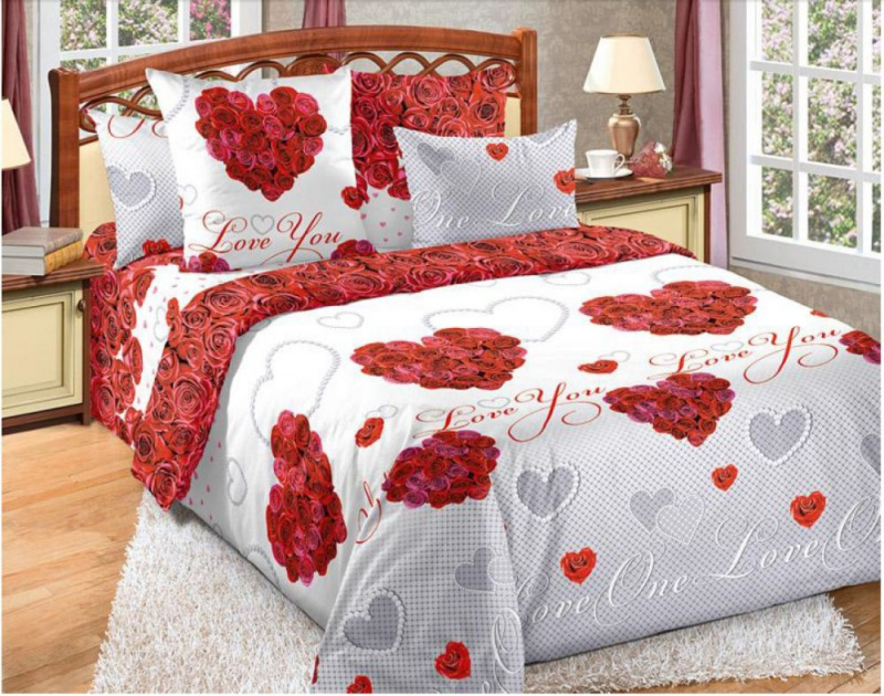 Bavlněné ložní povlečení – Valentýn růže v 1 balení obsahuje polštář o rozměru 70 × 90 cm a povlak na přikrývku o rozměru 140×200 cm.