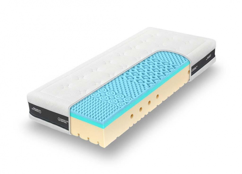 Hybridní pružná pěna Elastická vrstva, zvyšující odrazovou pružnost, vzdušnost a pocitovou pevnost matrace. Zajišťuje optimální klima, čímž napomáhá předcházet pocení.
